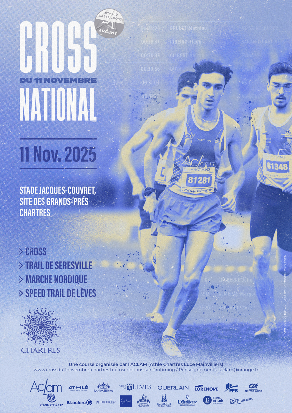 Les villes de Chartres et de Lèves soutiennent le Cross du 11-novembre ; Champhol, Mainvilliers et Saint-Prest autorisent le passage des trails sur leur territoire.