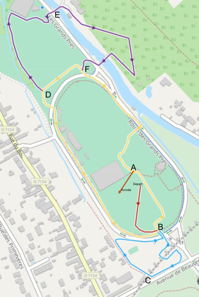 Grande boucle (jaune + bleu + violet) | ABCDEFA | 1920 m |